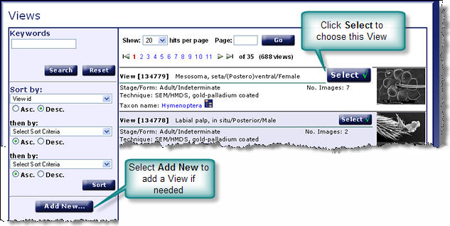 The data entered on the Add Image screen provides information about the image to upload, the specimen to which the image belongs, and its view. Both a specimen and a view should exist before uploading an image. If not previously added, provisions have been made on this screen to add a specimen and a view.